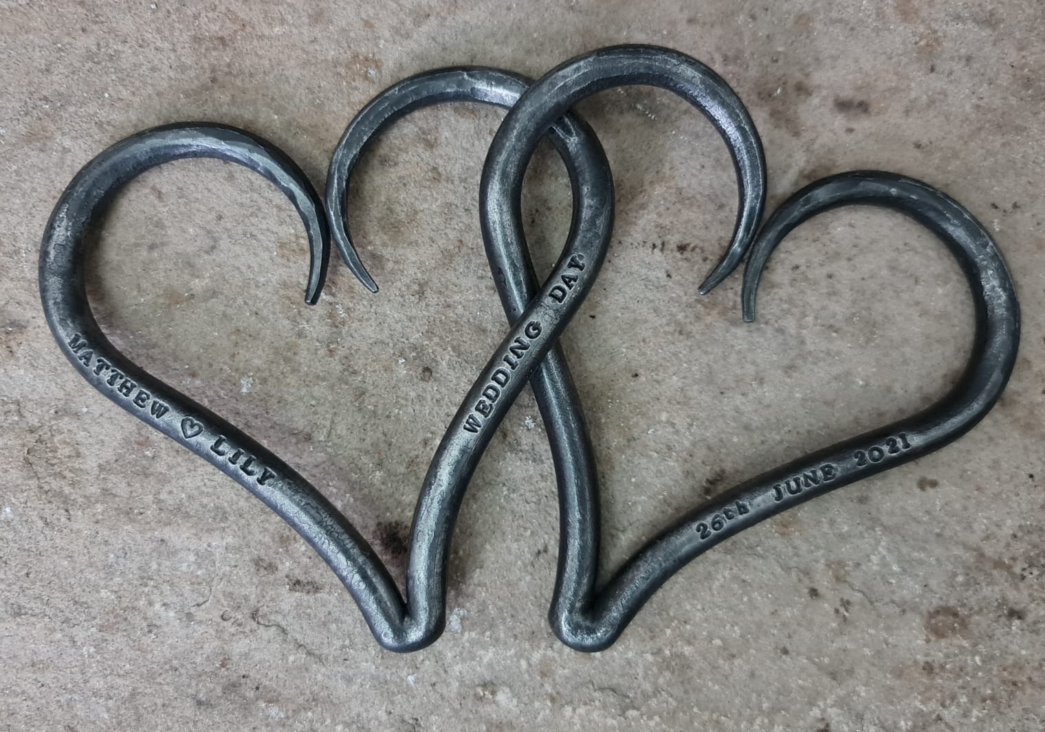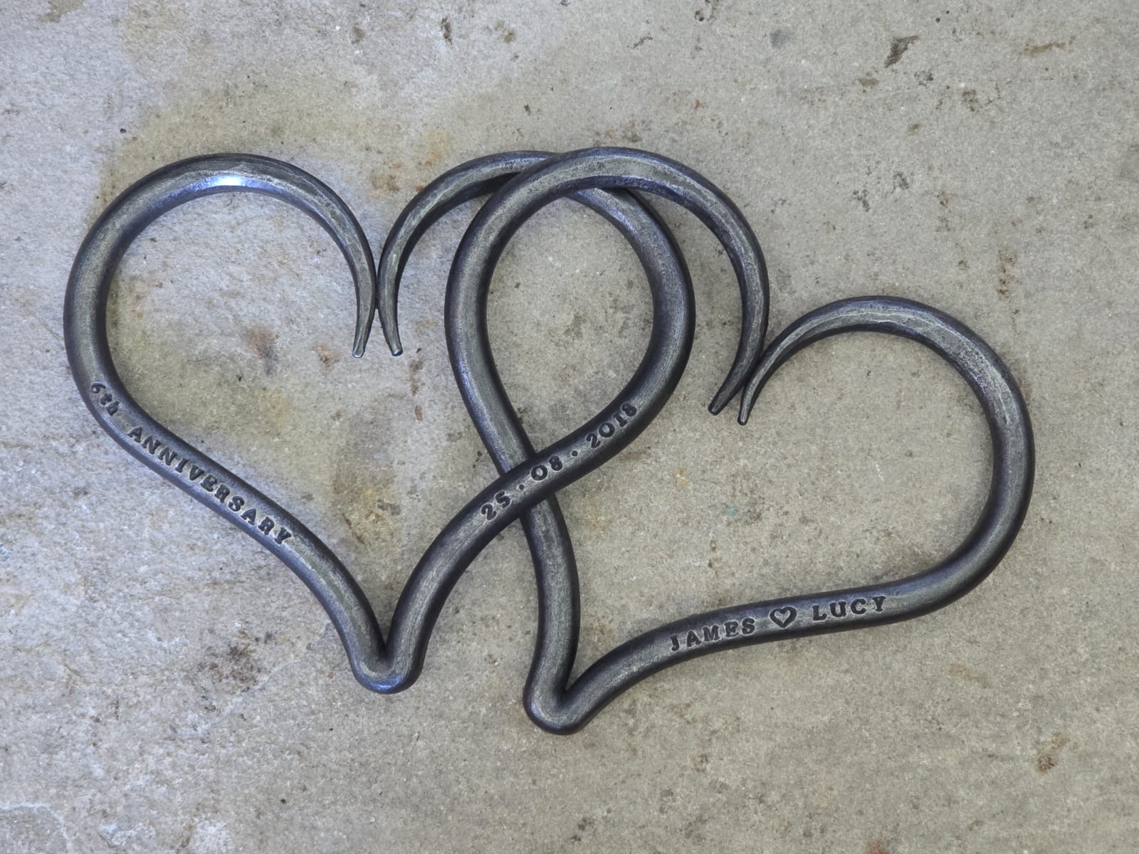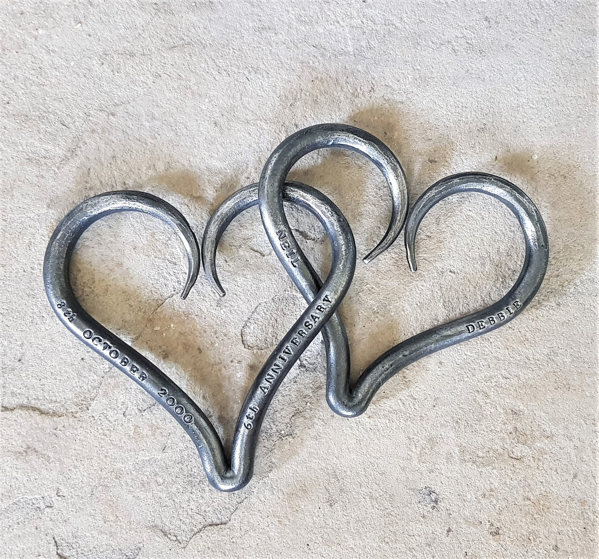 Deborah designed these gorgeous hearts as a symbol of the unbreakable bond of true love. The entwined, solid hearts are a perfect keepsake for the traditional 6th Wedding Anniversary of Iron. They can also be hand stamped to suit any anniversary, special occasion and are an ideal wedding gift.