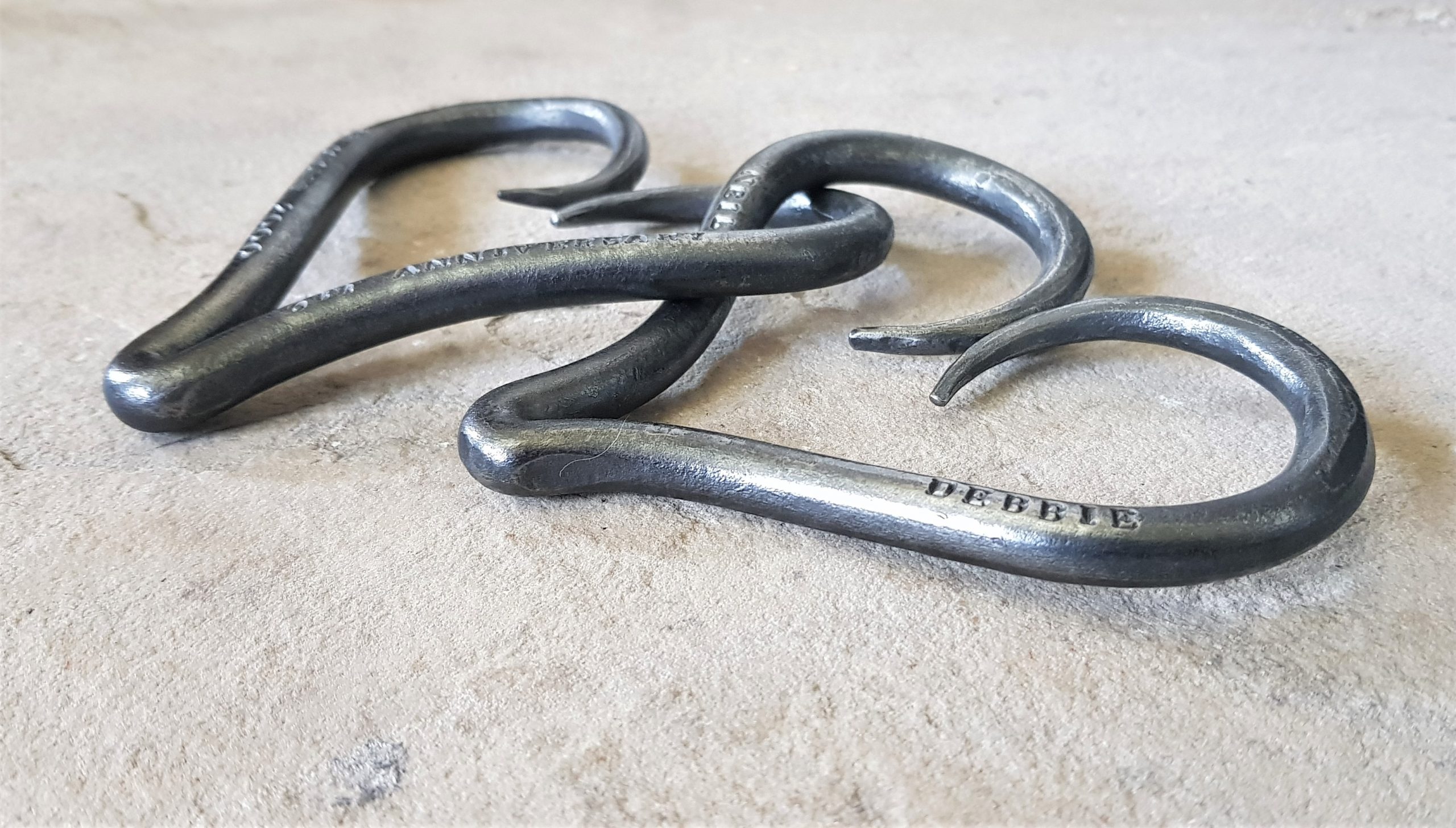 Entwined iron hearts beautifully crafted by artisan Blacksmith Deborah Robinson.